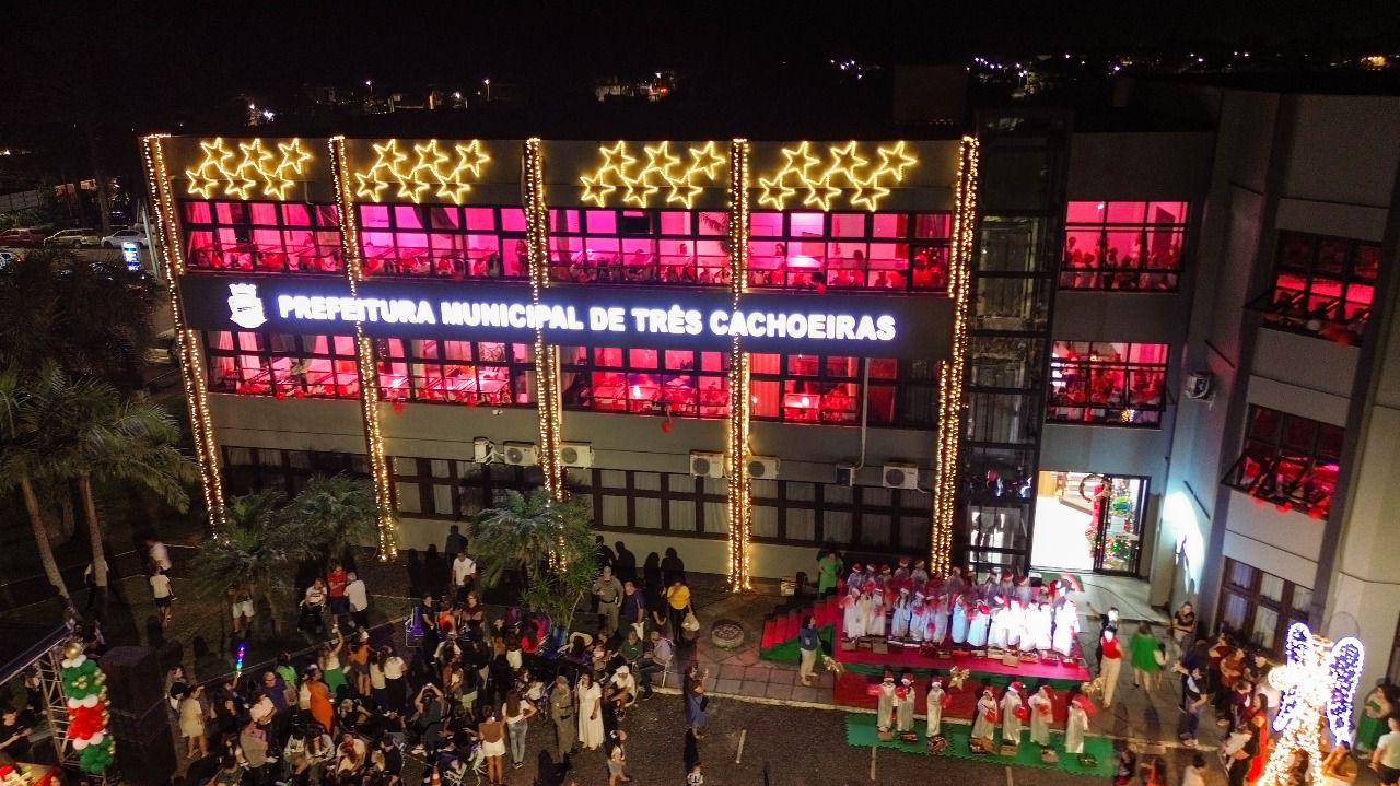 A Cantata de Natal de Três Cachoeiras reuniu milhares de pessoas na noite desta sexta-feira, 5 de dezembro, no pátio da Prefeitura. O tradicional evento contou com apresentações de crianças das escolas e entidades, emocionando o público que lotou o espaço.