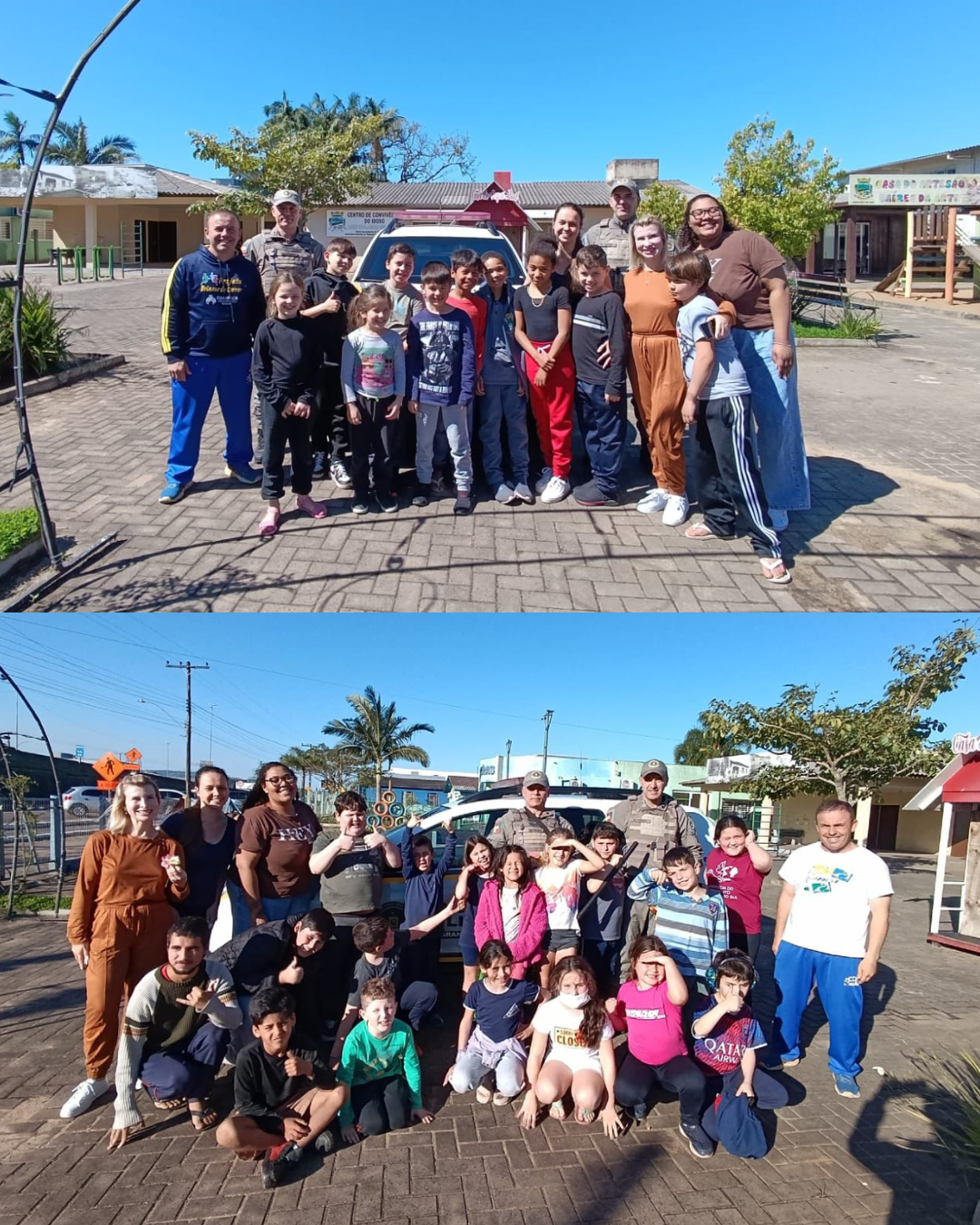 Projeto Pequeno Cidadão promoveu em agosto uma série de encontros especiais com profissionais de diferentes áreas, que compartilharam experiências e inspiraram crianças atendidas pelo programa. Participaram da ação os advogados Tiarlis Webber e Camila Hendler, a fotógrafa Morgana Rabelo, a psicóloga Caroline Cardoso e dois soldados da Brigada Militar de Três Cachoeiras.