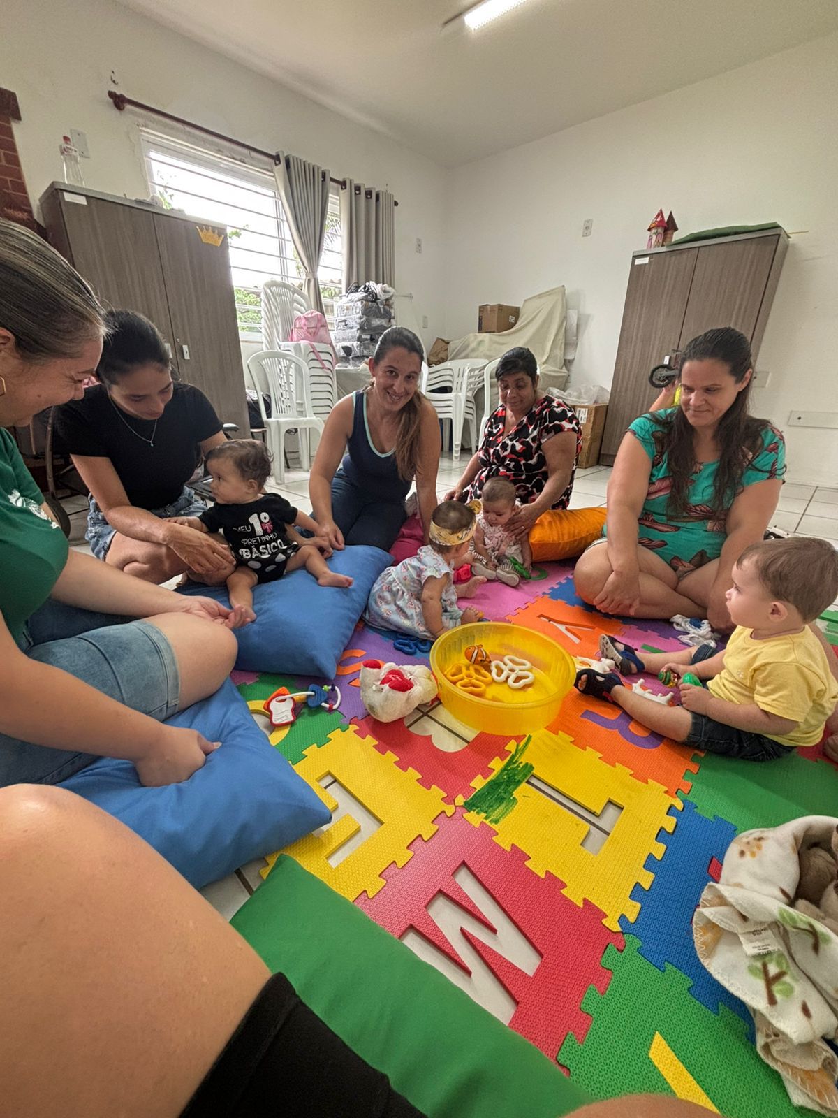 A atividade reuniu participantes em um espaço voltado ao acolhimento, à escuta e à troca de vivências sobre a maternidade. Durante o encontro, foram promovidos momentos de integração entre as mães, fortalecendo vínculos e incentivando o apoio mútuo no cuidado com os bebês.